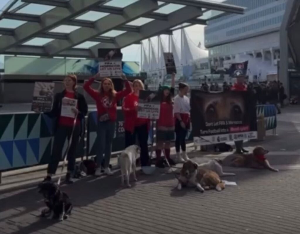 Protesters gathered in force outside the Vancouver Convention Centre on Thursday morning, as a coalition of international animal welfare groups staged a high-impact demonstration during the 76th FIFA Congress, demanding urgent action to stop the mass killing of dogs in Morocco ahead of the 2030 FIFA World Cup.